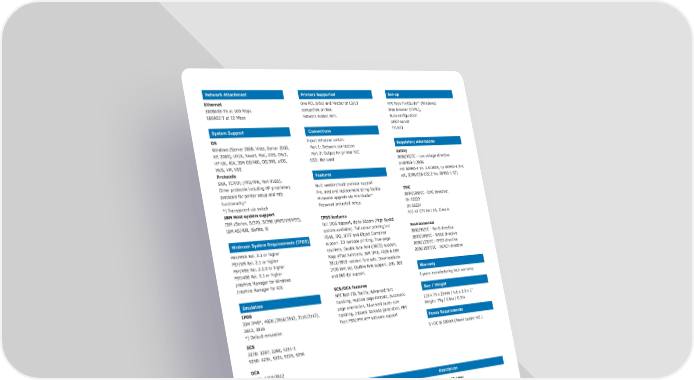 Network Attachment Printers Supported Set-up One PCL 5/5c/ and PostScript L2/L3 Ethernet MPI Tech PrintGuide™ (Windows) compatible printer. 100BASE-TX at 100 Mbps Web browser (HTML), Network output port. 10BASE-T at 10 Mbps Auto-configuration DHCP server TELNET System Support Connections OS 2-port Ethernet switch: Regulatory information Windows (Server 2008, Vista, Server 2003, Port 1: Network connection XP, 2000), UNIX, Novell, Mac, DOS, OS/2, Port 2: Output for printer NIC Safety HP-UX, AIX, IBM OS/400, OS/390, z/OS, USB: Not used 2006/95/EC - Low voltage directive: MVS, VM, VSE En60950-1:2006 Protocols IEC 60950-1 Ed. 2.0:2005, UL 60950-1 2nd Features SNA, TCP/IP, (PPD/PPR, Port 9100). edt, (CAN/CSA-C22.2 No. 60950-1-07) Other protocols including HP proprietary Multi session/multi protocol support protocols for printer setup and mfp Pre, post and replacement string facility EMC functionality* Firmware upgrade via PrintGuide™ 2004/108/EC - EMC directive: *) Transparent via switch Password protected setup. EN 55022 IBM Host system support EN 55024 IBM zSeries, S/370, S/390 (MVS/VM/VSE), IPDS features FCC 47 CFT Part 15, Class A IBM AS/400, iSeries, i5 Full IPDS support, Up to 55ppm (High Speed options available). Full colour printing incl Environmental FS45, JPG, JFIFF and Object Container 2002/95/EC - RoHS directive Minimum System Requirements (IPDS) support. 2D barcode printing, True-page 2003/108/EC - WEEE directive PSF/MVS Rel. 2.1 or higher counters, Double byte font (DBCS) support, 2006/122/EC - PFOS directive PSF/VM Rel. 2.1 or higher Page offset functions. IBM IP40, 4028 & IBM 2006/1907/EC - REACH directive PSF/VSE Rel. 2.2.0 or higher 3812/3816 resident font sets. Downloadable PSF/400 Rel. 3.1 or higher IPDS font set. Outline font support, 240, 300 Warranty InfoPrint Manager for Windows and 600 dpi support. InfoPrint Manager for AIX 3 years manufacturing fault warranty SCS/DCA features MPI Tech FSL facility, Advanced font Size / Weight Emulation handling, Multiple page formats, Automatic IPDS 116 x 74 x 25mm / 4.6 x 2.9 x 1” page orientation, Advanced paper size IBM IP40*, 4028 (3916/3912, 3116/3112), Weight: 75g / 2.6oz / 0.2lb handling, Internal barcode generation, MPI 3812, 3816 Tech PSS/EPM AFP software support Power Requirements *) Default emulation SCS 5 VDC @ 500mA (Power supply incl.) 3270: 3287, 3268, 4214-1 5250: 4234, 5224, 5225, 5256 DCA 5250: 5219/3812 Part Number Product Name Description Up to 55 ppm: 962456-x30 LinkCom III S PrintServer Basic version 962456-x31 LinkCom III S SCS/DCA PrintServer w/ SCS/DCA support 962456-x33 LinkCom III S SCS/DCA + IPDS PrintServer w/ SCS/DCA and IPDS support 962456-x35 LinkCom III S SCS/DCA + IPDS full colour PrintServer w/ SCS/DCA and IPDS full colour option High speed versions 962456-xx3 LinkCom III S SCS/DCA HS + IPDS PrintServer w/ SCS/DCA and IPDS support 962456-xx5 LinkCom III S SCS/DCA HS + IPDS full colour PrintServer w/ SCS/DCA and IPDS full colour option Part Number Additional Feature Description -1xx International version EU/International power supply -2xx UK version UK Power supply -3xx US version US Power supply -5xx AUS version Australian Power supply MPI Tech Offices United Kingdom North America - West Coast France 40, rue du Général Malleret Joinville Anchor House, 50 High Street 4952 Warner Avenue, Suite 301 BP 88 - 94402 Vitry sur Seine Cedex Bagshot GU19 5AW Huntington Beach, CA 92649-5506 Phone: +33 (0)1 4573 0940 Phone: +44 (0)844 800 9803 Phone: +1 (714) 840 8077 Fax: +33 (0)1 4680 7071 Fax: +44 (0)1276 452 379 Fax: +1 (714) 840 2176 E-mail: [email protected] E-mail: [email protected] E-mail: [email protected] Denmark Germany North America - East Coast Vadstrupvej 35 Bavariastrasse 7a 2001 Jefferson Davis Highway, Suite 306 DK-2880 Bagsvaerd D-80336 Muenchen Arlington, VA 22202 Phone: +45 4436 6000 Phone: +49 (0)89 35 4762 20 Phone: +1 (703) 418 0680 Fax: +45 4436 6111 Fax: +49 (0)89 35 4762 11 Fax: +1 (703) 418 0684 D16128-004 Company and product names mentioned in this text are trademarks or registered trademarks of their respective owners. MPI Tech A/S cannot be held responsible for any technical or typographical errors and reserves the right to make changes to products and documentation without prior notification. April 2012